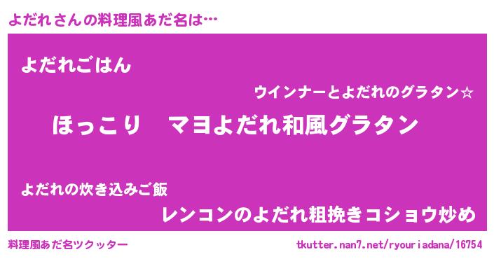 | ヘコむあだ名 | 『酢こんぶ』『よだにゅー』 |