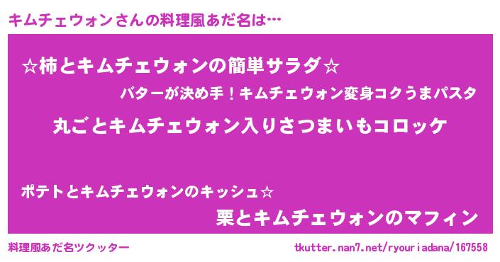 | 意味不明あだ名 | 『住所不定無職キムチェウォン(65歳)』 |