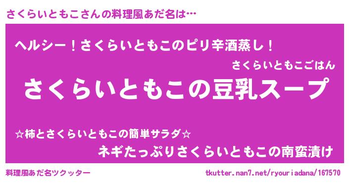 | 意味不明あだ名 | 『とにかく怪しいさくらいともこ』 |