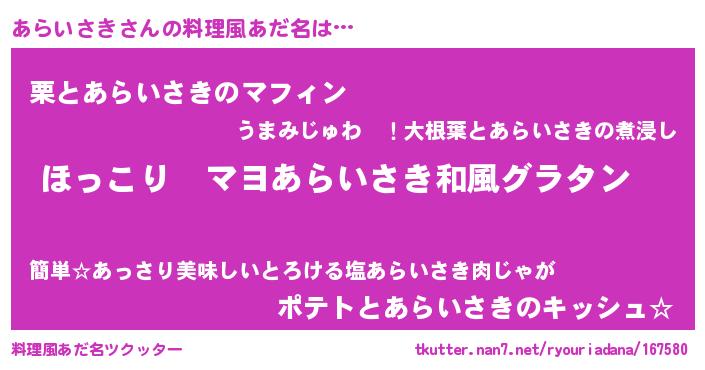 | 意味不明あだ名 | 『住所不定無職あらいさき(74歳)』 |