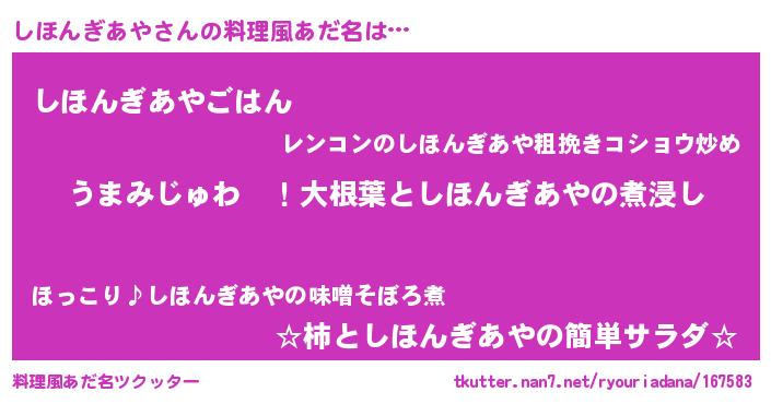 | 欧米人風あだ名 | 『しほんぎあやクリステル』 |