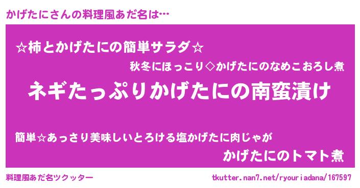 | 男性向けラノベタイトル風あだ名 | 『カゲタニアートオンライン』 |