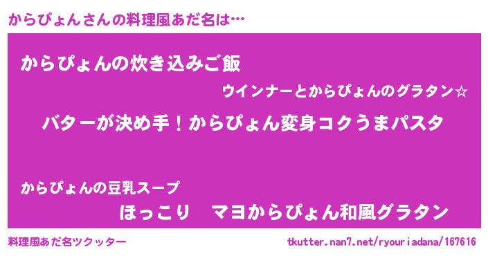 | 女子向けラノベタイトル風あだ名 | 『からぴょん恋絵巻』 |