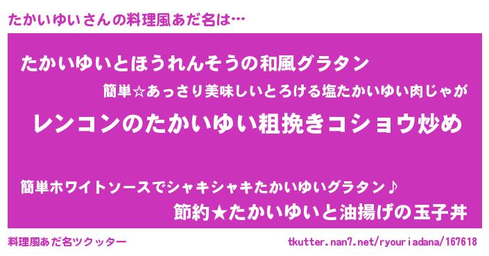 | 欧米人風あだ名 | 『ケンブリッジたかいゆい』 |