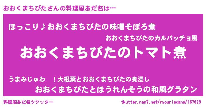 | 男性向けラノベタイトル風あだ名 | 『おまえをオタクにしてやるから、俺をおおくまちびたにしてくれ! 』 |