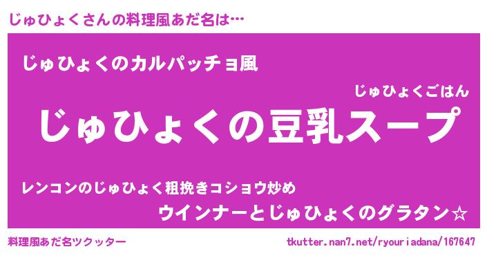 | 女子向けラノベタイトル風あだ名 | 『じゅひょくは平凡を望む』 |
