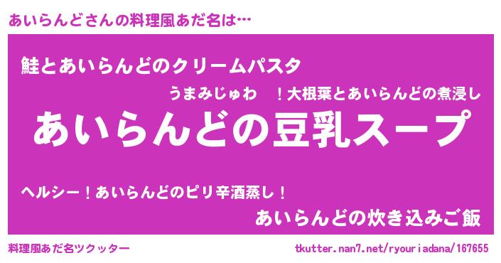 ヘコむあだ名 | 『あいを』『なまこ酢』『あいふぇ~』 |