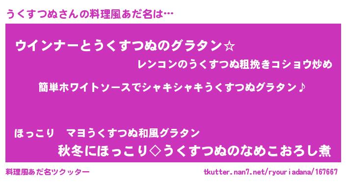 | 意味不明あだ名 | 『とにかく怪しいうくすつぬ』 |