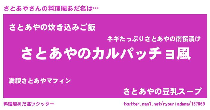 | 意味不明あだ名 | 『住所不定無職さとあや(47歳)』 |
