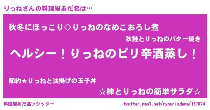 | 男性向けラノベタイトル風あだ名 | 『Re:りっねから始める異世界生活』 |