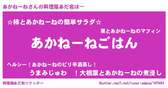 | 恥ずかしいあだ名 | 『あかっちょ』『アカネーネデラックス』 |