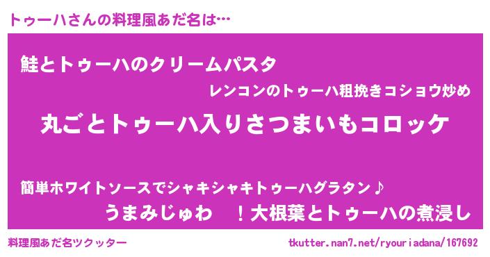 | ヒーロー風カッコイイあだ名 | 『仮面トゥダー』『天空の使者トゥーハ』 |