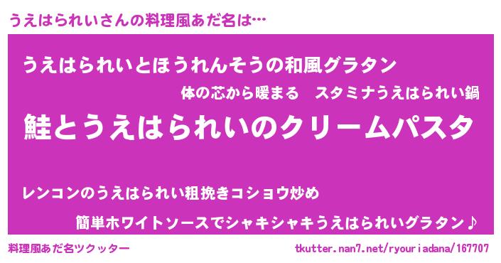 | ヒーロー風カッコイイあだ名 | 『慈愛の使者うえはられい』 |