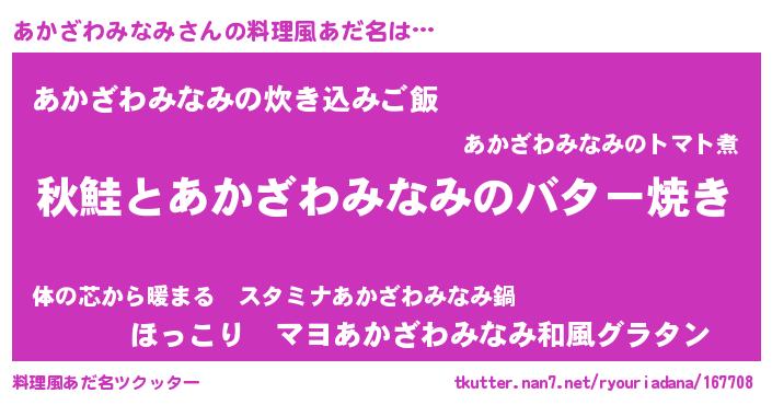 | 意味不明あだ名 | 『永久保存あかざわみなみ』 |