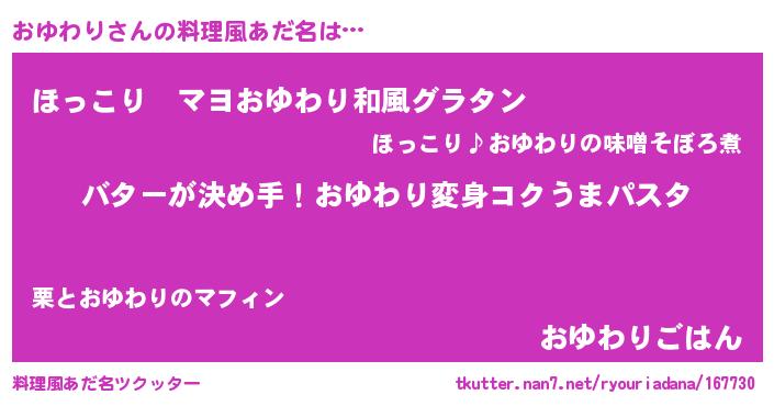 | 欧米人風あだ名 | 『ダニエルおゆわり』『マイケルおゆわり』 |