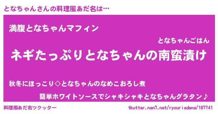 | ポケモン風あだ名 | 『トナチュウ』『ゼニトナ』 |