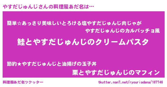 | ヘコむあだ名 | 『やすだじゅんじ(震え声)』『やすもー』 |