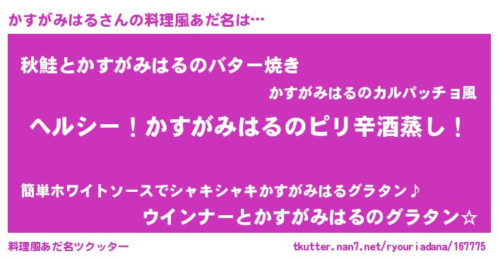 | ヘコむあだ名 | 『かすがみはる(笑)』『なまこ酢』 |