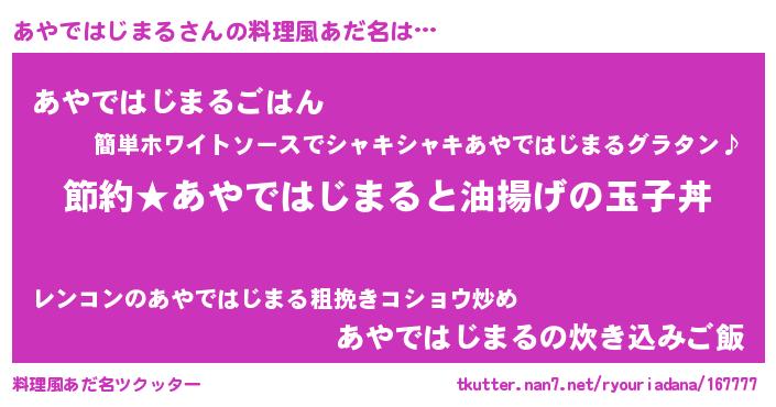 | ヘコむあだ名 | 『あやにゅー』『あやぷりん』『牛乳』 |