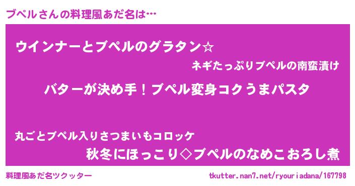 | 女子向けラノベタイトル風あだ名 | 『ブペル恋絵巻』『ブペル伯爵の花嫁』 |