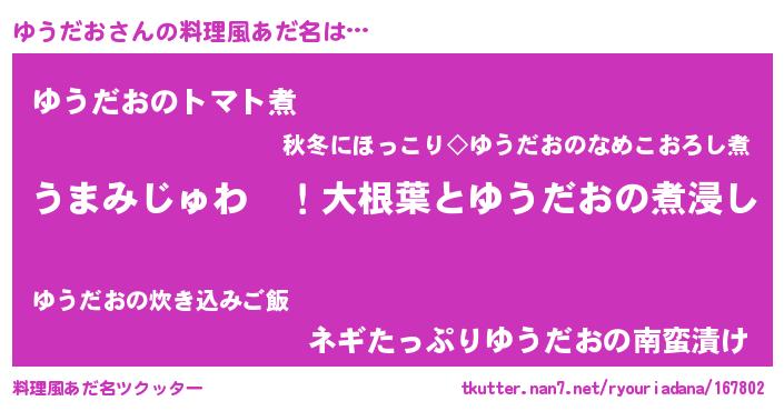 | 意味不明あだ名 | 『ゆうだおフォーエバー』『自称ゆうだお』 |