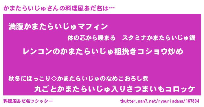 | ヘコむあだ名 | 『かまたらいじゅ(苦笑)』『牛乳』 |