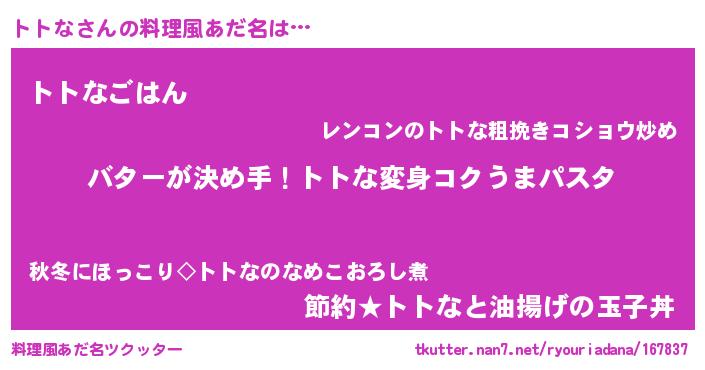 | 意味不明あだ名 | 『眠気覚ましガムトトな味』『自称トトな』 |