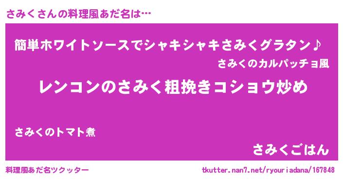 | 意味不明あだ名 | 『自称さみく』『とにかく怪しいさみく』 |