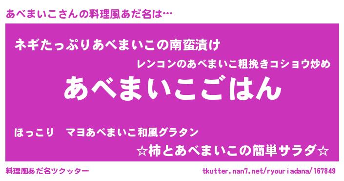 | ヒーロー風カッコイイあだ名 | 『スーパーアベマイコ』『仮面アベダー』 |