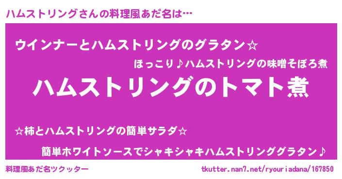 | ヒーロー風カッコイイあだ名 | 『正義の使者ハムストリング』 |