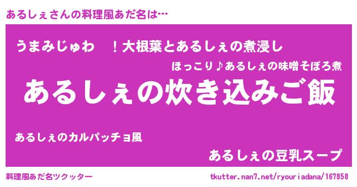 | 胡散臭い通販商品みたいなあだ名 | 『運命の人と巡り会える高級そうな壺…その名も「あるしぇ」』 |