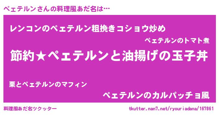 | 男性向けラノベタイトル風あだ名 | 『ペェテルンの憂鬱』 |