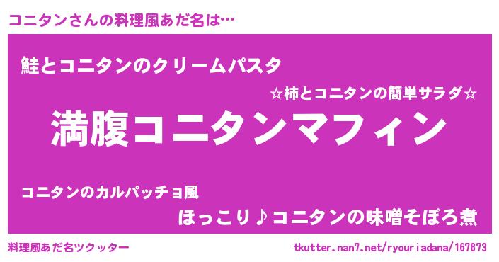 | 男性向けラノベタイトル風あだ名 | 『コニタンという概念が存在しない退屈な世界 』 |