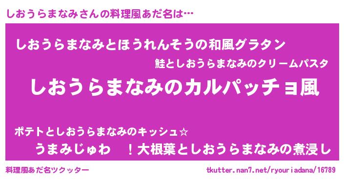| 意味不明あだ名 | 『住所不定無職しおうらまなみ(62歳)』 |
