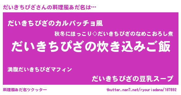 | 意味不明あだ名 | 『住所不定無職だいきちぴざ(4歳)』 |