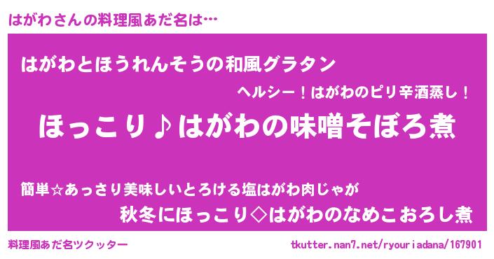 | 胡散臭い通販商品みたいなあだ名 | 『必ず成功する霊験あらたかなお札…その名も「はがわ」』 |