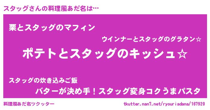 | 胡散臭い通販商品みたいなあだ名 | 『伝統あるサプリメント…その名も「スタッグ」』 |