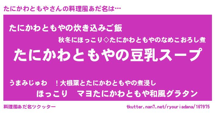 | 意味不明あだ名 | 『とにかく怪しいたにかわともや』 |