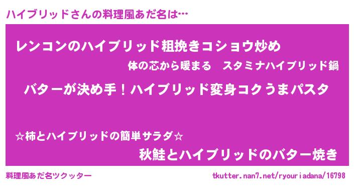 | 男性向けラノベタイトル風あだ名 | 『ノーゲーム・ノーハイブリッド』 |