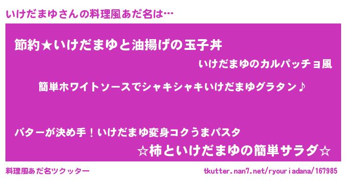 | 恥ずかしいあだ名 | 『イケリンリン』『プリティーいけだまゆ』 |