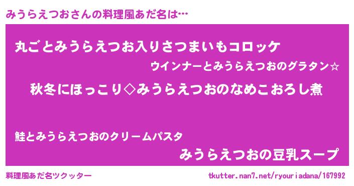 | ヘコむあだ名 | 『みうぷりん』『なまこ酢』 |