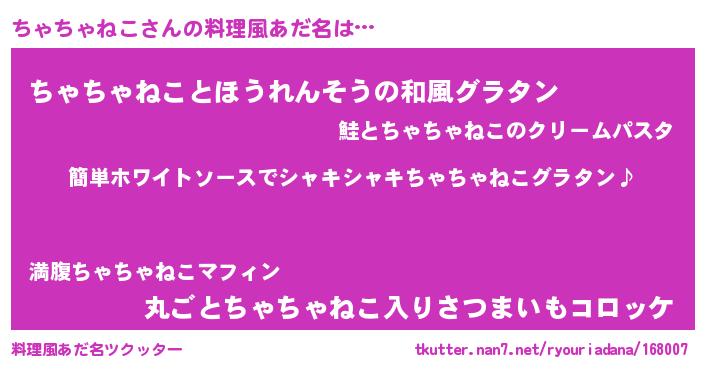 | 女子向けラノベタイトル風あだ名 | 『ちゃちゃねこ様がみてる』 |