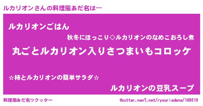 | 女子向けラノベタイトル風あだ名 | 『乙女ゲームの破滅フラグしかない悪役ルカリオンに転生してしまった…』 |