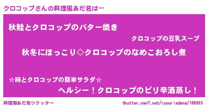 | 意味不明あだ名 | 『永久保存クロコップ』『自称クロコップ』 |