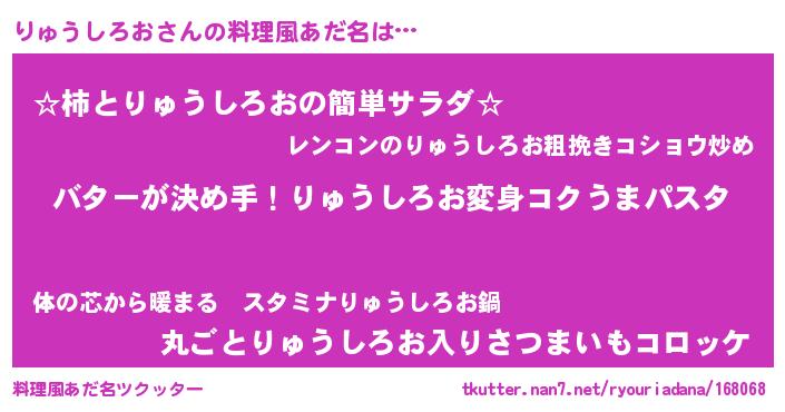 | 男性向けラノベタイトル風あだ名 | 『ノーゲーム・ノーリュウシロオ』 |