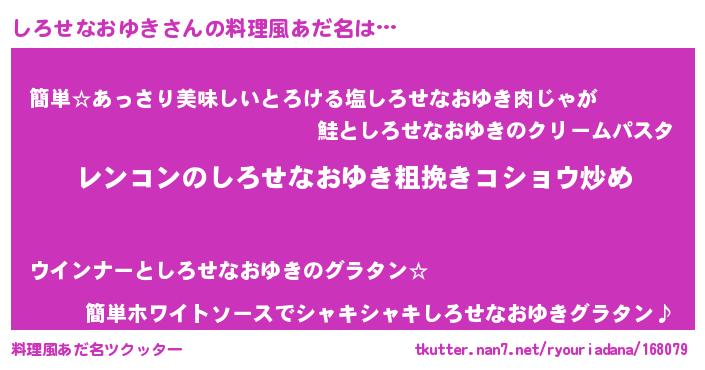 | 女子向けラノベタイトル風あだ名 | 『しろせなおゆきなんてお断りですっ。』 |