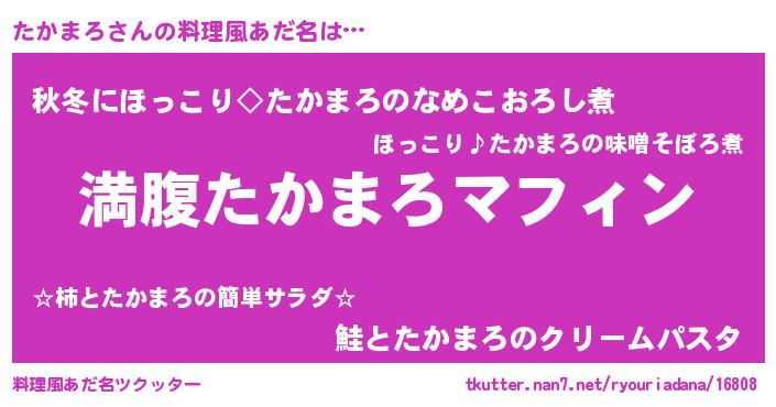 | 女子向けラノベタイトル風あだ名 | 『異世界で失敗しない100のたかまろ』 |