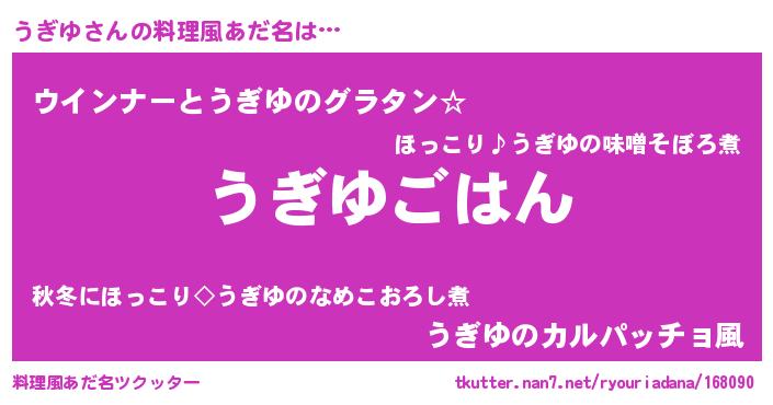 | ヒーロー風カッコイイあだ名 | 『ウルトラうぎゆマン』『仮面ウギダー』 |