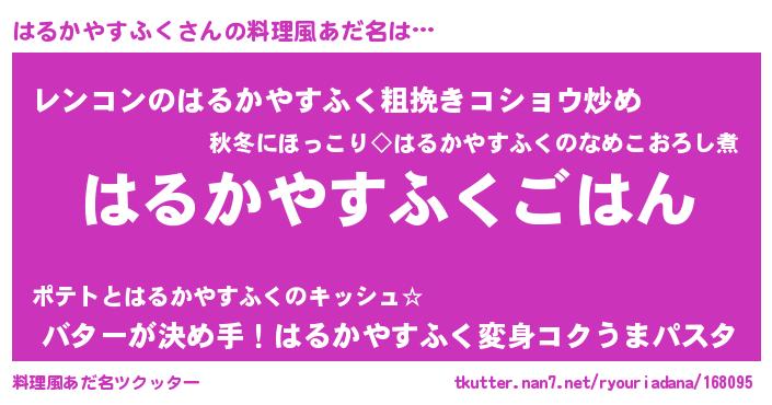 | 意味不明あだ名 | 『めかぶ科はるかやすふく属』 |