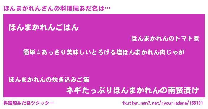 | ヘコむあだ名 | 『ほんまかれん(遠い目)』『ほんっふぃ~』 |